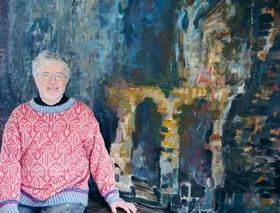Den lokale billedkunstner Morten Skovmand, der bor og arbejder i Stenvad, åbner lørdag den 13. oktober en udstilling af oliemalerier på Gudhjem Museum på Bornholm. Her ses han ved maleriet »Isola«.