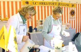 Lions Club Ebeltoft Juliane havde endnu en gang kæmpesucces med salg af friskbagte æbleskiver, julesennep og lokal kogebog på Æbelfestivallen i efterårsferien.