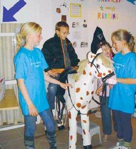Denne model kunne ses sammen med de mange oplysende plancher, PowerPoints, video med videre, som eleverne præsenterede de besøgende for. Gruppen som havde arbejdet med handicapridning havde også taget en hest med.