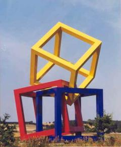 Arnoldis kuber smidt ved indkørslen fra Randersvej som Grenaas inspirerende vartegn.