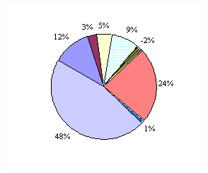 Men hvad bruges pengene til? Tager man f.eks. 1 krone og splitter den op, viser der sig følgende fordeling: