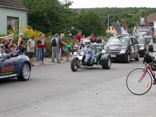 Reklame feltet: så skete der endelig noget, reklame bilerne kom, der blev uddelt slik, flag, aviser, kasketter og meget mere, stemningen steg.