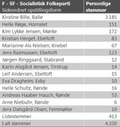 Fordelingen af de 4.330 stemmer til SF-Syddjurs.