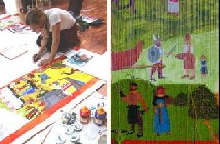 Alle sponsorerne vil blive inviteret til selv at prøve at væve - vi overvejer også en egentlig sponsoraften med mad, vin og fortælling om motiverne, ligesom der er en mulighed for, at sponsorerne kan få deres logo indvævet i kanten.