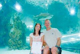 Den dykkende gæst nr. 10.000 var Lena Hansen fra Vejle, som udover et gratis dyk i Oceanariet også fik et gratis dyk ved de store tropiske hajer i hajtanken sammen med dykkerinstruktør Teddy Vester.