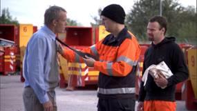 - Men da uovervindeligheden en aften for alvor stiger ham til hovedet og han overser sit eget alkoholindtag, gÃ¥r det galt, og Jesper kører galt i sin bil. Han mister kørekortet og bliver idømt samfundstjeneste, der skal afsones pÃ¥ den lokale genbrugsstation i Nordsjælland. Jesper kan ikke forlige sig med sit nye nedværdigende job, der efter hans mening burde betjenes af mennesker med et lavere intelligentniveau end ham selv… Alle hans fordomme bliver bekræftet, da han pÃ¥ genbrugsstationen møder sine nye kollegaer: den flyvske Dion, den virkelighedsfjerne Lotte og stedets krakilske leder.