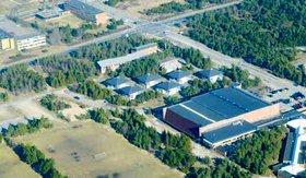 Her ses et luftfoto af Grenaas ungdomsuddannelsesinstitutioner. Det nye fælles bygningskompleks til et Campus Djursland tænkes placeret på det grønne areal øverst til højre i billedet.