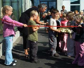 Med små taler af både en lærer, en elev og skolelederen afvekslende med sange – den ene skrevet af musiklærer Kristian Jensen og den anden fremført af Karsten Refsgaard – var det et meget fint lille program, inden snoren blev klippet over af en elev, og de mere officielle taler blev holdt.