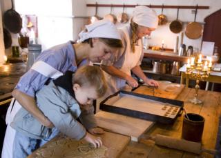 Mød husjomfruen og kokkepigerne der bager og sylter i herregårds-køkkenet. Se når stuepigerne dækker bord og pynter op til jul og vær selv med til at lave juleklip i stuerne.