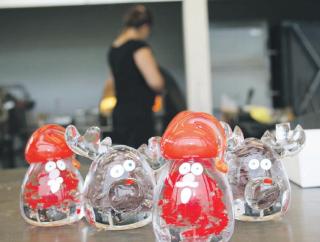 Følg med helt tæt på, når Pernille & Theis Strange forvandler den flydende glasmasse til finurlige julemænd og bedårende rensdyr.