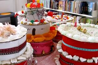I anledningen af Syddjurs Billedskoles 20 års jubilæum udstilles flotte jubilæumskager på biblioteket. - Der er brugt alt fra pap og perler til flamingo og gamle elpærer, til de fantasifulde og ganske kaloriefrie kager. Alle er de fremstillet af børn i Syddjurs Kommune på Børnekulturnatten i 2011.