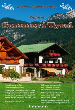 Det er Grenaa Amatørteater der opfører Sommer i Tyrol. - Vi befinder os i Østrig på hotel Den Hvide Hest. Den muntre og joviale tjener Leopold er ulykkeligt forelsket i hotelejeren Josepha, men hun værdiger ham ulykkeligvis ikke megen opmærksomhed. Josepha er mest af alt interesseret i den let blaserte sagfører Siedler, der er hidkaldt til hotellet for at mægle i en strid om undertøj og bukseknapper, som verserer mellem buksefabrikanterne Otto Brockmüller og Sigismund Sülzheimer. - Sagfører Siedler er slet ikke interesseret i Josephas tilnærmelser. I stedet forelsker han sig i Otto Brockmüllers datter, og det lykkes parret at narre den knarvorne far og holde adskillige hemmelige stævnemøder i den skønne natur, alt imens Sigismund Sülzheimer ankommer til Den hvide hest, hvorpå han hovedkulds forelsker sig i den nærige professor Hinzelmanns svært stammende datter. - Glæd dig til efterårets forestilling af Grenaa Amatørteater.