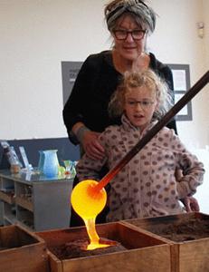 Besøg Glasmuseets arbejdende værksted og kom helt tæt på, når den varme glasmasse forvandles til flotte brugsting. Lav dit eget lille kunstværk i støbt glas. Lav et aftryk af din hånd eller en flot figur i vådt sand og se på, når aftrykket fyldes med gloende, flydende glas. Hent figuren efter afkøling næste dag og tag dit eget lille kunstværk af glas med hjem. Forud tilmelding er ikke nødvendig.