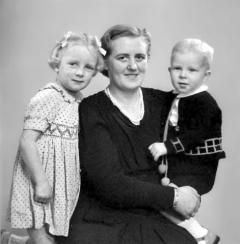 Ole Thomsen med sin mor, Dora, og sin søster, Kirsten. Omkring 1947.