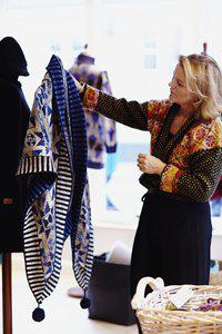 Christel Seyfarth bor og arbejder i sit værksted i Nordby på Fanø. Herfra udtænkes nye ideer og hentes inspiration til mange af de store frakker, jakker og tørklæder, som hun strikker.
