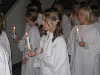 For efter en lille pause på et kvarters tid er der dækket op til juletræsfest af den gode, gamle slags. Der bliver naturligvis dans omkring juletræet, leg med børnene samt besøg af julemanden, der kommer og deler godteposer ud, inden spejderne opfører et af de stemningsfulde Lucia-optog som afslutning på den del af festen.