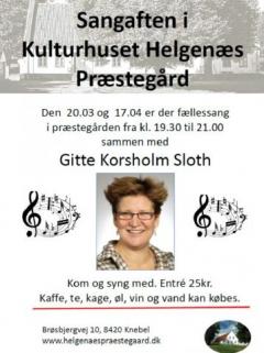 05/05 2023 Sangaften i Kulturhuset Helgenæs Præstegård mandag d. 20/3 kl. 19.30 til 21