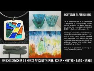 Udover Exners smykker udstiller billedkunstneren Peter Husted sine farverige malerier, der spiller smukt op til de emaljerede smykker. Peters malerier forestiller alt og ingenting i en kombination af dybe farver og farvet lys. Han trykker de rigtige farver, det rigtige lys - dybt ind i lærredet. Og så er det bare op til dig selv, at suge det hele ud igen!". Skulptøren Ole Sand skaber spændende fabeldyr og væsner med abstrakte former i den smukke stenart serpentin fra Afrika. Er det en flodhest eller en drage fra en fabel ? - Glaskunstneren Bettina Vahle arbejder med de lyse nordiske farver i sin glaskunst, hvor styrken og det skrøbelige i naturens former ofte gengives og portrætteres i værkerne.