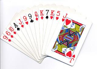 Eksempel på hvorledes kortene arrangeres i hånden.