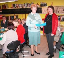 Arkivleder Else Lassen (tv) og bestyrelsesmedlem Vita Axelsen præsenterede Nørre Djurs Egnsarkivs årbog for 2004 ved en reception i arkivets lokaler i Stokkebro Skole.