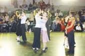 De 600 dansere var fordelt med 250 i Disco Freestyle, der startede turneringen kl. 11.00, og ca. 350 dansere til Standarddans, der starter kl. ca. 14.30. Her ses nogle af danserne i aktion i forbindelse med den traditionsrige nytårs-danseturnering i Grenaa Idrætscenter.