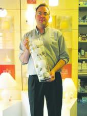 hos A/S Søren Jensen i Lillegade i Grenaa er i konkurrence-hjørnet i forbindelse med Open by Night i Grenaa på fredag den 3. juni. Gæt hvor mange pærer, der er i den glas-bowle, som Peter fra A/S Søren Jensen holder her, og vind en støvsuger til en værdi af 1.399 kroner.