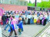 Det hele startede med et flot og festligt optog med start fra el-værket ved N. P. Josiassensvej, og det blev ikke mindre festligt af, at Norddjurs Friskole stillede med et helt samba-orkester. Herfra gik det så i samlet trop med retning mod Søndre Skole, hvor der ventede et hav af boder og aktiviteter - i bedste markedsgøgler-stil.