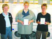 Tina Westmark fra A/S Søren Jensen har netop overrakt præmier til konkurrence-vinderne Lene Pedersen og Anna Marie Kamp, der to begge har vundet en mobiltelefon hos A/S Søren Jensen i Lillegade i Grenaa.