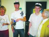 Michael Rygaard (t.v.) og Mads Brødsgaard var årets første HTX-studenter på Grenaa Tekniske Skole. Michael flankeres af sin stolte mor, mens Mads har en ikke mindre stolt mormor ved sin side.