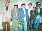 Her ses Grenaa Gymnasium & HF’s allerførste 2005-studenter sammen med rektor Ole Fjord. Billedet er taget mandag formiddag i sidste uge.