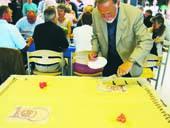 En flot jubilæumskage var en del af traktementet, idet Grenaa IF inviterede til 100 års jubilæums-reception forrige lørdag. Her er det æresmedlemmet Erik Hoberg, der angriber den flotte kage.