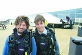 Anders og Peter får de sidste instruktioner forud for dykket i hajtanken. (Foto: Flemming Højer)