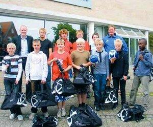 Rasmus A. Sørensen fra AGF Fodboldtalentskole overragte gaverne til de glade fodboldspillere.