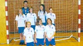 Træner Tommy Jespersen med sine dygtige fodboldpiger fra GIF, som blev landsdelsmestre i indefodbold inden for Danske Gymnastik- og Idrætsforeninger. Bagest fra venstre er det Rikke Ditlevsen, Linette Andersen, Sofie Mølgaard Andersen og Julie Schjødt Laursen. Forrest fra venstre: Caroline Læssøe Nielsen, Agnes Brask Sørensen og Matilde Wiil Christiansen.
