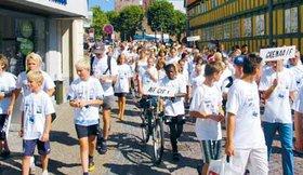 Trafikken gik helt i stå, da 2.500 fodboldspillere og ledere vandrede gennem Grenaas gader i det festlige Kattegat Cup-optog. Som det fremgår, var Grenaa IF rigt repræsenteret.